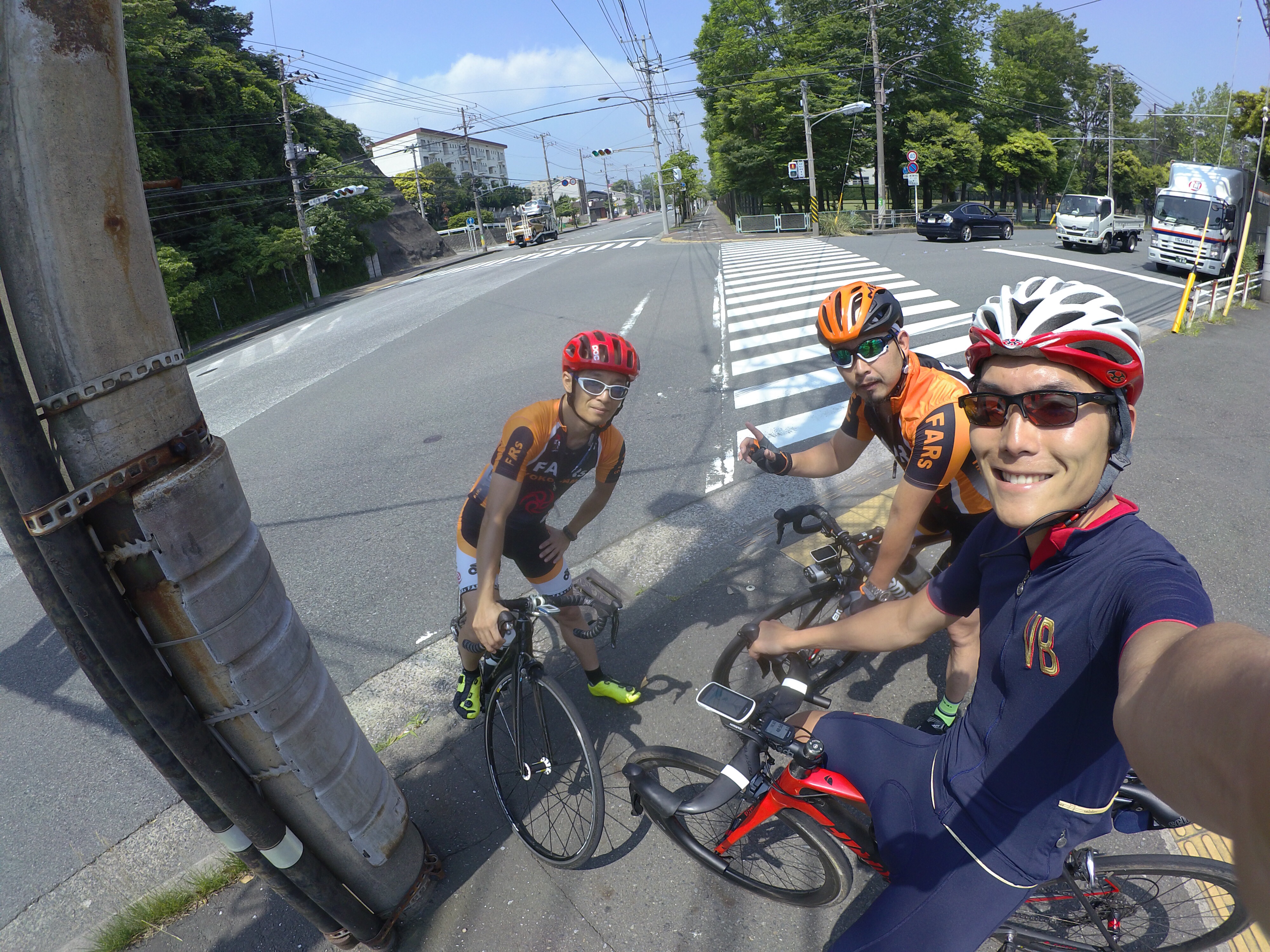 移動途中に出会った消防士のサイクリスト。汗をかきたくないので途中まで後ろつかせてください〜ってお願いしました。そしたら「あ、Kinofitさんですね!」と笑